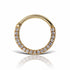 Diese Variation des Classic Diamond Eternity Ring, ist auf einer Seite mit einer Reihe von 1 mm Diamanten versehen. Dieser Ring eignet sich besonders gut für Septum und Daith Piercings, da die Diamanten direkt von vorne sichtbar sind. Die Ringstärke beträgt 1.2 mm.